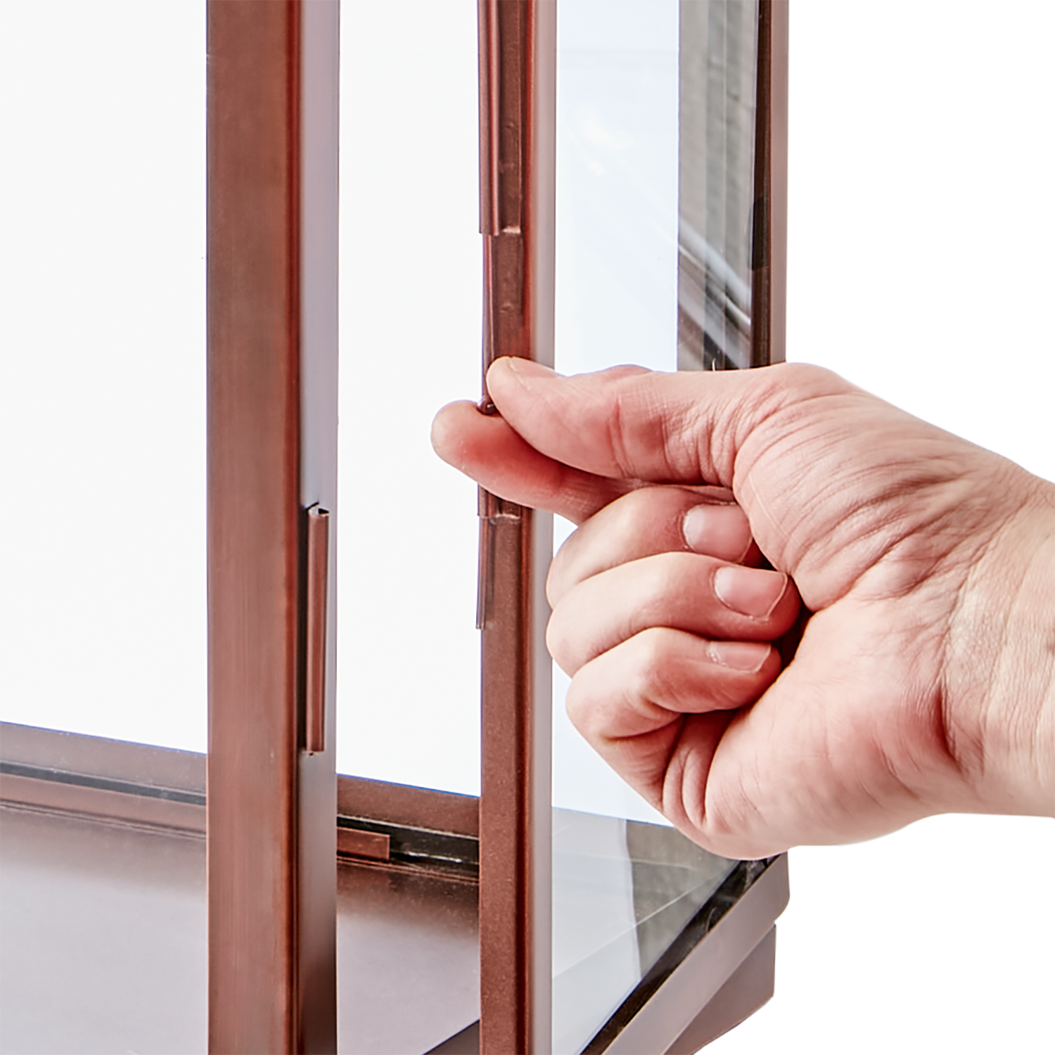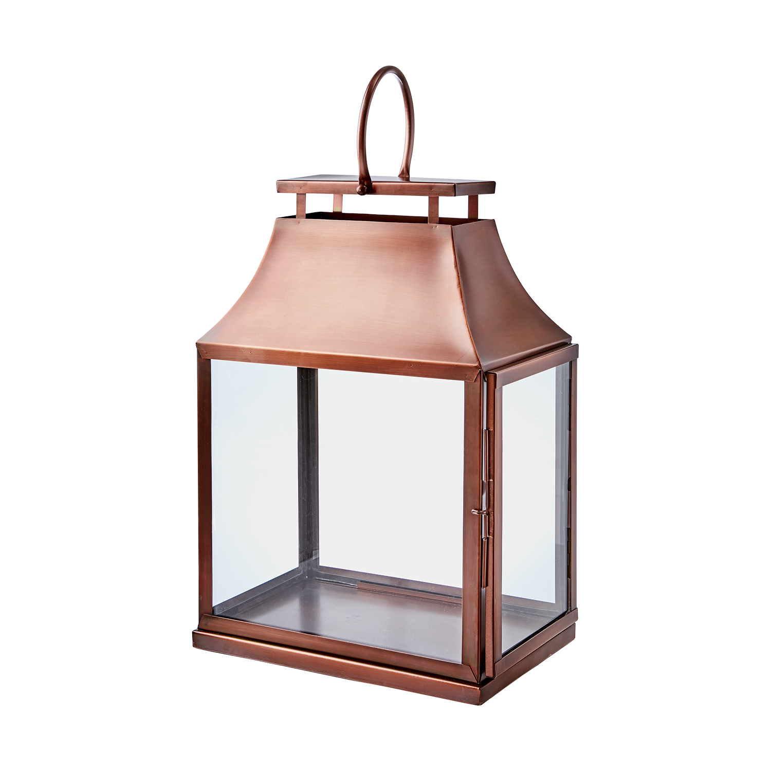 Kobberfarvet rustfri stål lanterne med glas der måler :